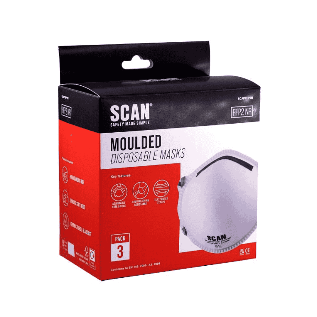 These Scan FFP2 moulded disposable masks are designed to cover the nose, mouth and chin. The construction is made of the filter material itself.
